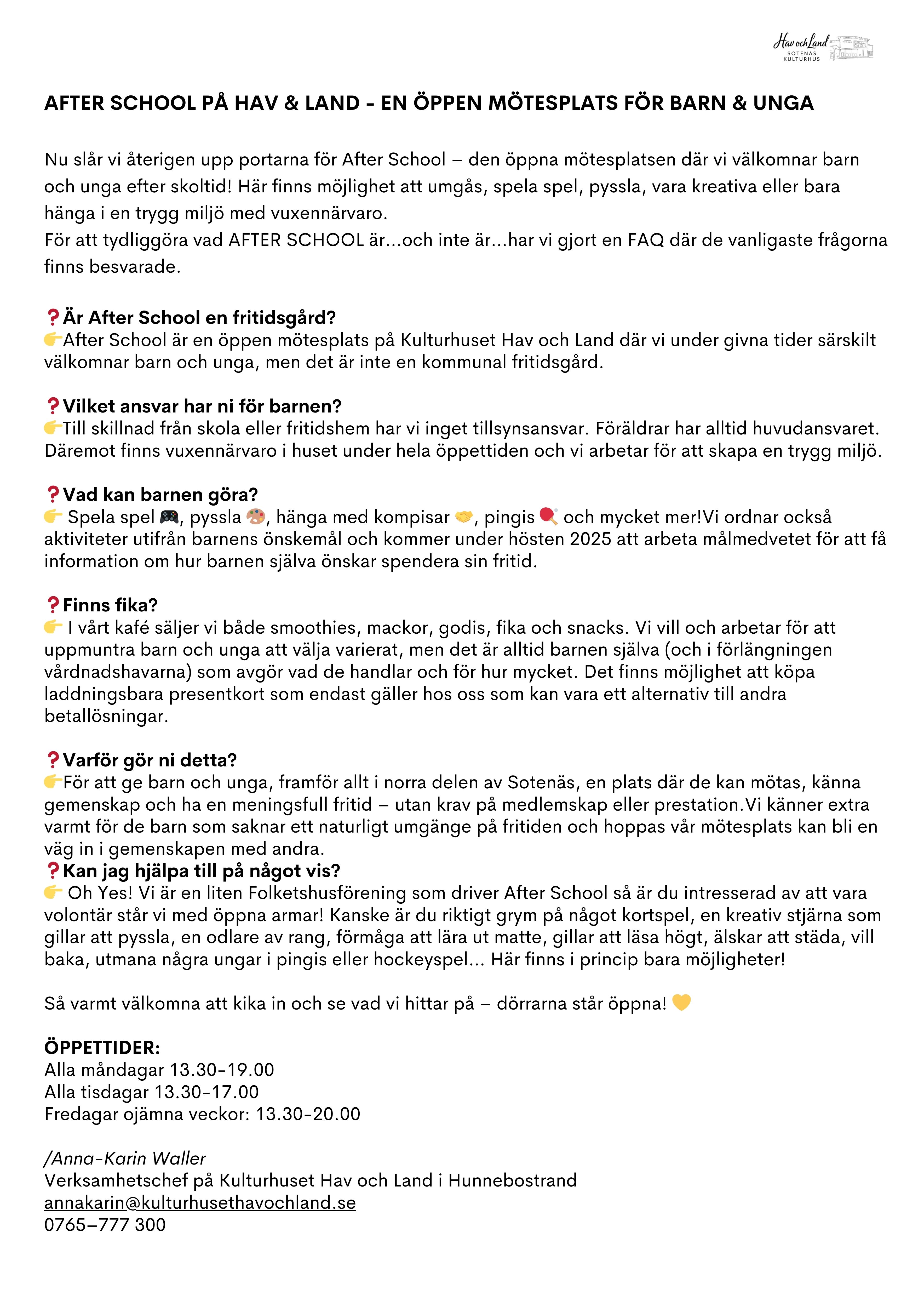 FAQ - Vanliga frågor om After School